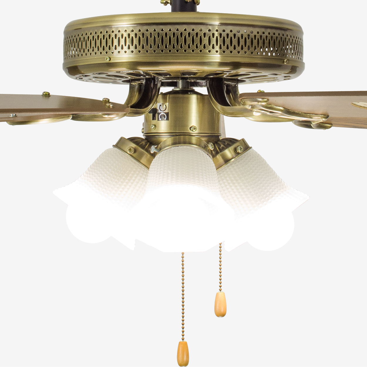 Плафоны вентилятора изготовлены из стекла.
