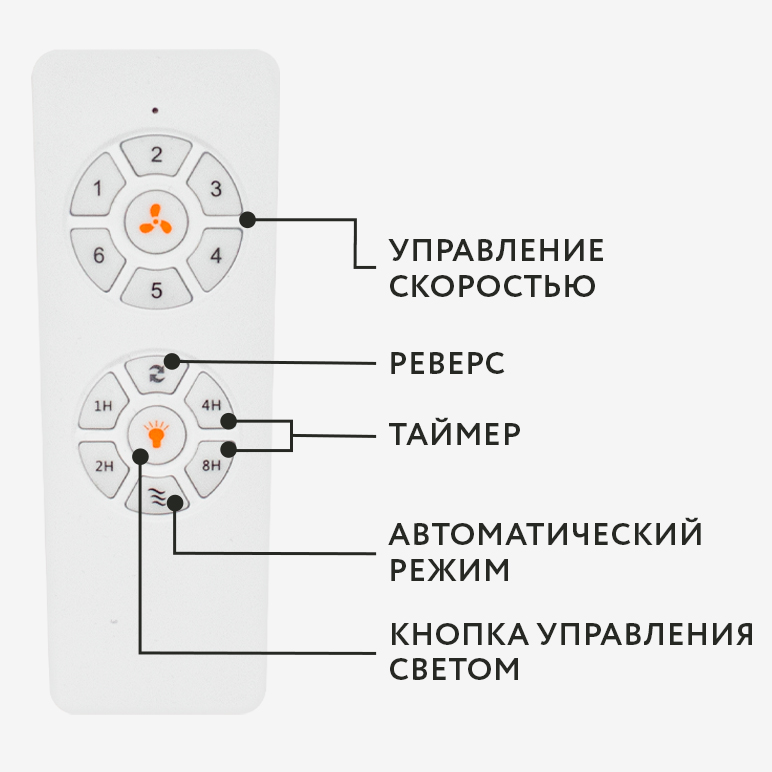 1H-2H-4H-8H - Таймер — позволяет установить таймер отключения вентилятора. После нажатия на одну из этих кнопок вентилятор проработает 1/2/4/8 часов соответственно на выбранной заранее скорости и выключится;