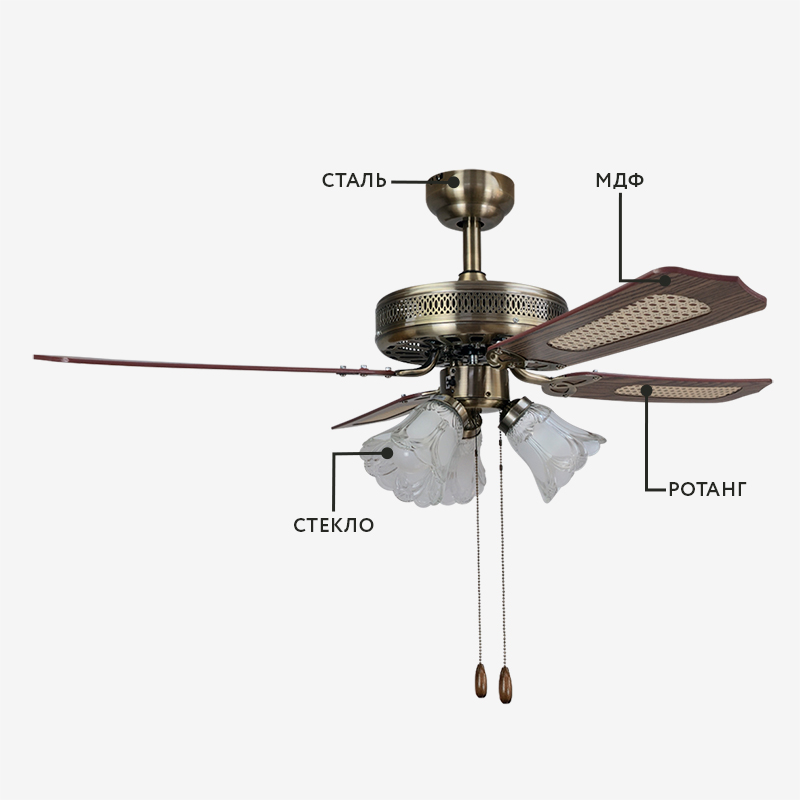 Лопасти вентилятора выполнены из клеёного влагостойкого МДФ.