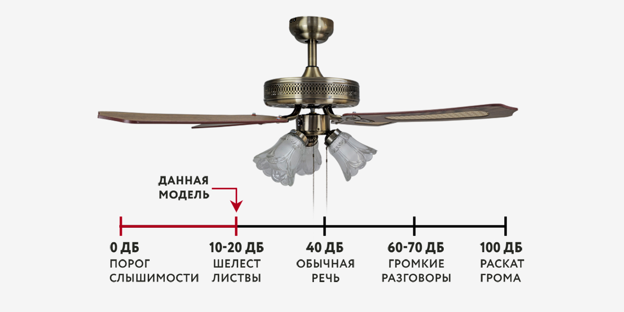 При работе вентилятора на максимальной скорости слышен исключительно тихий звук лопастей, рассекающих воздух. Звук работающего двигателя отсутствует.