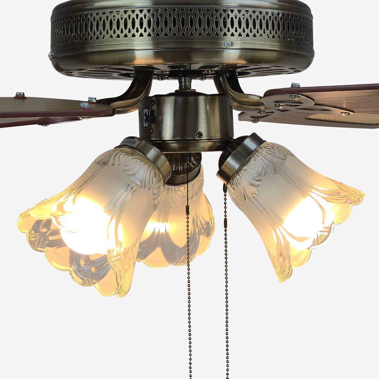 С целью безопасной транспортировки вентилятор Hawaii 105 частично разобран и упакован в компактную картонную коробку. В комплект поставки входит подвесная штанга, крепежная пластина, крепежные болты, светильник, три плафона, балансировочный комплект, инструкция по монтажу и эксплуатации на русском языке.
