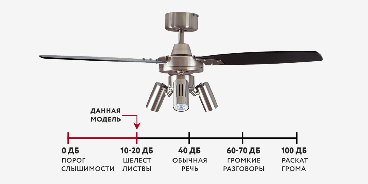 При работе вентилятора на максимальной скорости слышен исключительно тихий звук лопастей, рассекающих воздух. Звук работающего двигателя отсутствует.