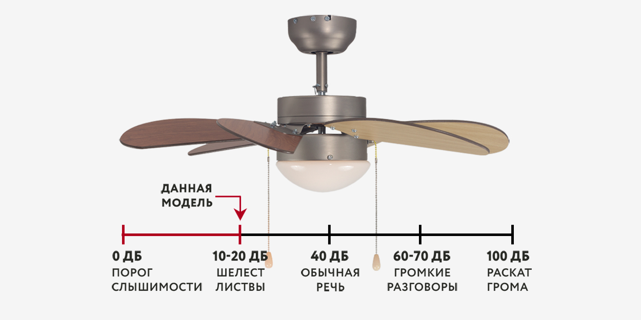 При работе вентилятора на максимальной скорости слышен исключительно тихий звук лопастей, рассекающих воздух. Звук работающего двигателя отсутствует.