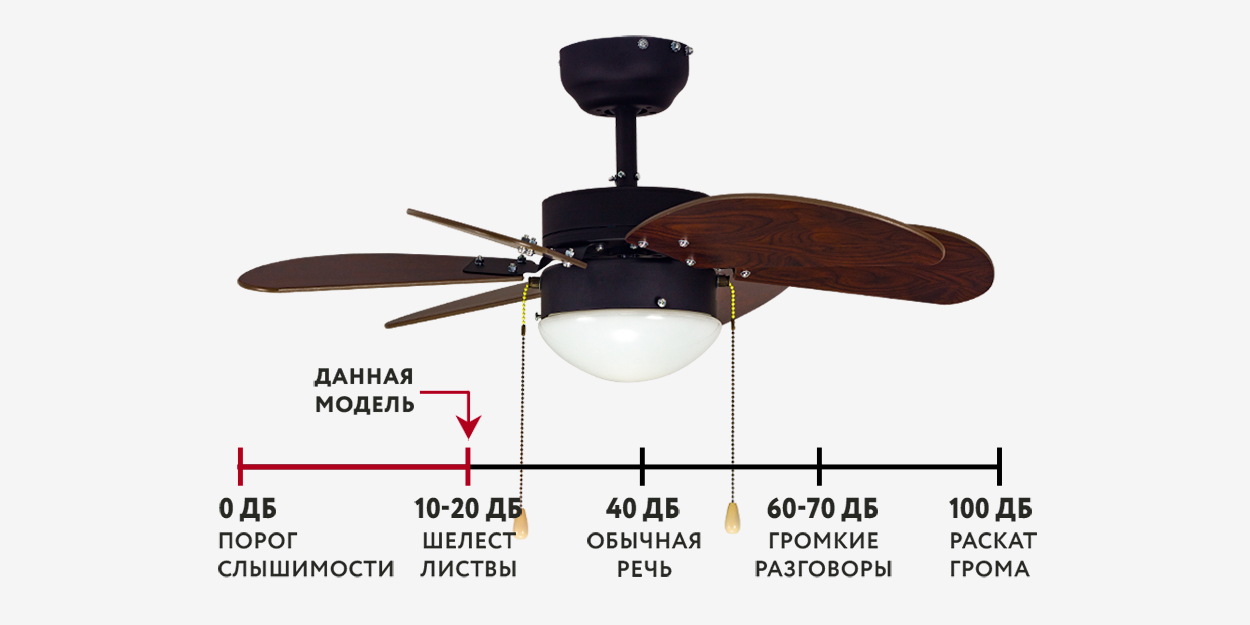 При работе вентилятора на максимальной скорости слышен исключительно тихий звук лопастей, рассекающих воздух. Звук работающего двигателя отсутствует.