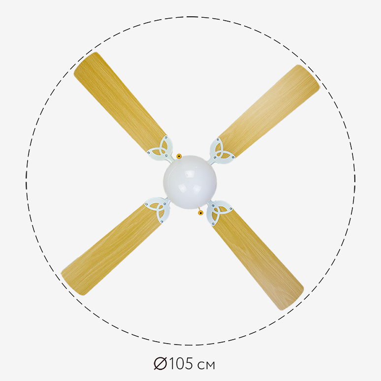 Размах лопастей - диаметр модели равен 105 см. Данная модель идеально подходит для эффективной работы в помещении площадью до 10 м2, с высотой потолка не более 4 м