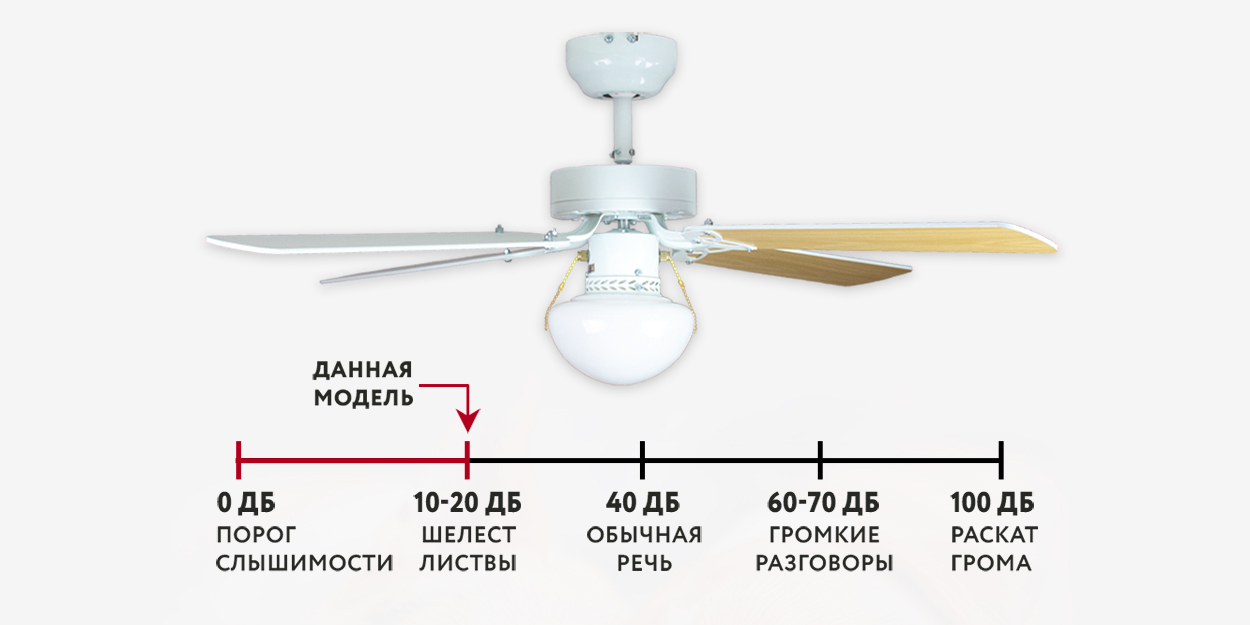 При работе вентилятора на максимальной скорости слышен исключительно тихий звук лопастей, рассекающих воздух. Звук работающего двигателя отсутствует.