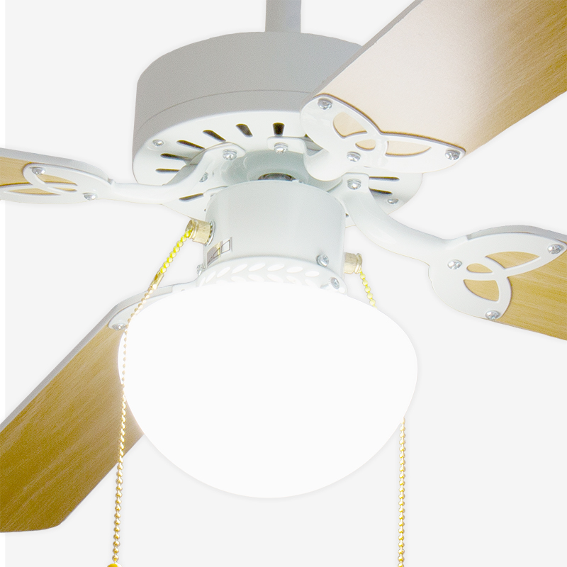 Лопасти вентилятора выполнены из клеёного влагостойкого МДФ, разного цвета с каждой стороны, т.е. пользователь может выбирать цвет из двух возможных. Оборотная сторона лопасти после установки будет направлена вверх к потолку, ее цвет не будет виден.