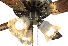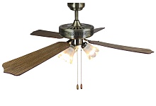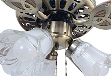 Вентилятор и люстра, находясь в одном корпусе, имеют раздельное энергопитание. Поэтому пользователь сможет задействовать потолочное освещение, не включая пропеллер.