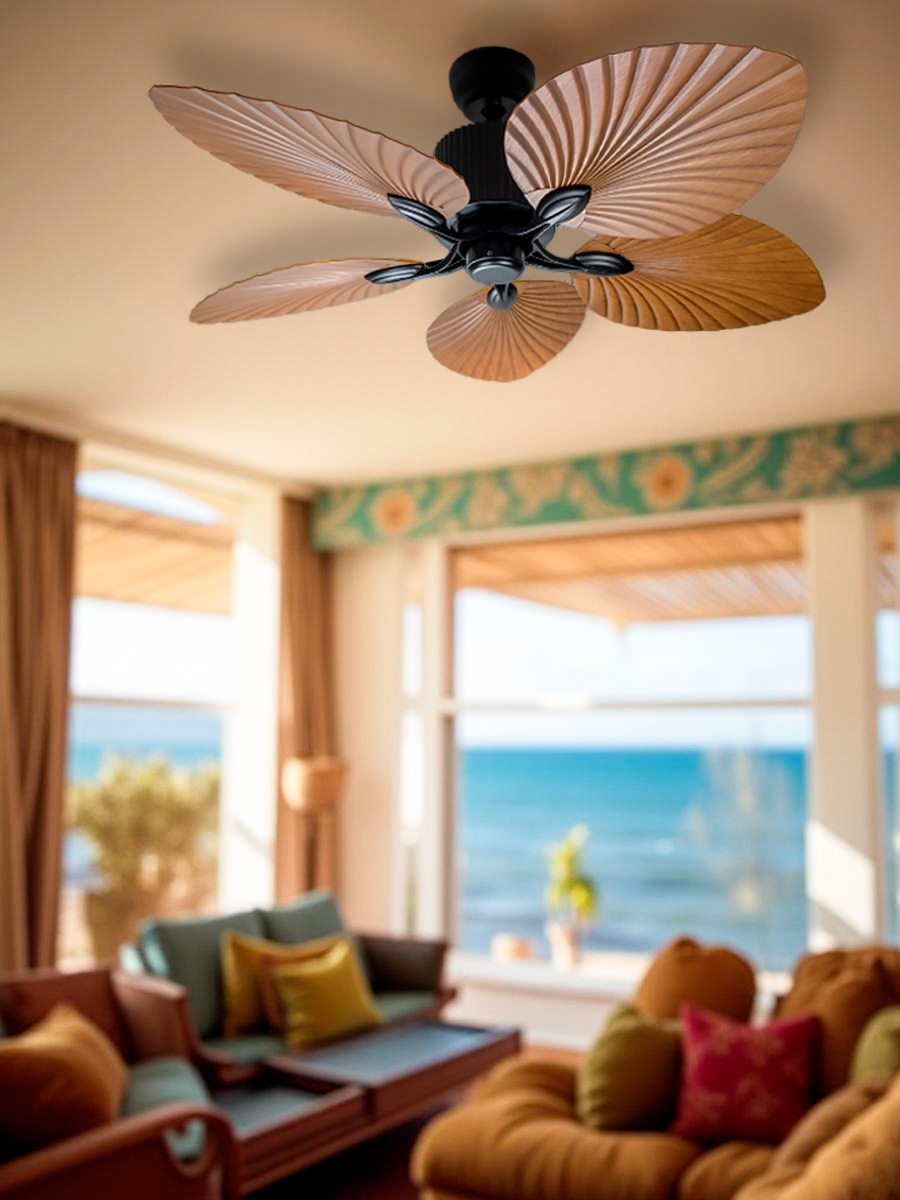 Лопасти изготовлены из ABS пластика в форме пальмового листа. Цвет лопастей – золотисто-коричневый.