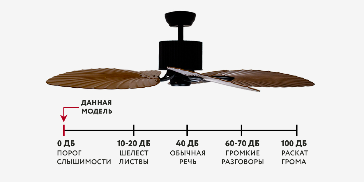 При работе вентилятора на максимальной скорости слышен исключительно тихий звук лопастей, рассекающих воздух. Звук работающего двигателя отсутствует.