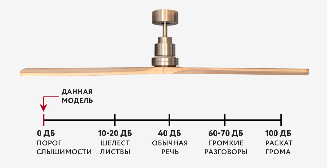 При работе вентилятора на максимальной скорости слышен исключительно тихий звук лопастей, рассекающих воздух. Звук работающего двигателя отсутствует.