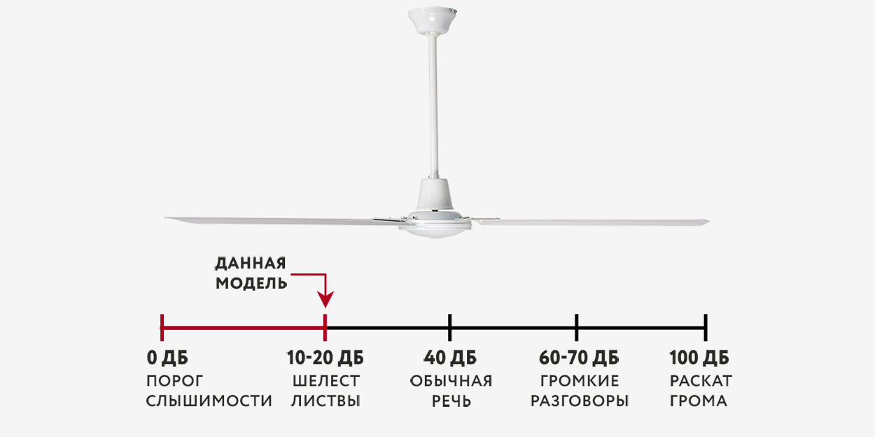 При работе вентилятора на максимальной скорости слышен исключительно тихий звук лопастей, рассекающих воздух. Звук работающего двигателя отсутствует.