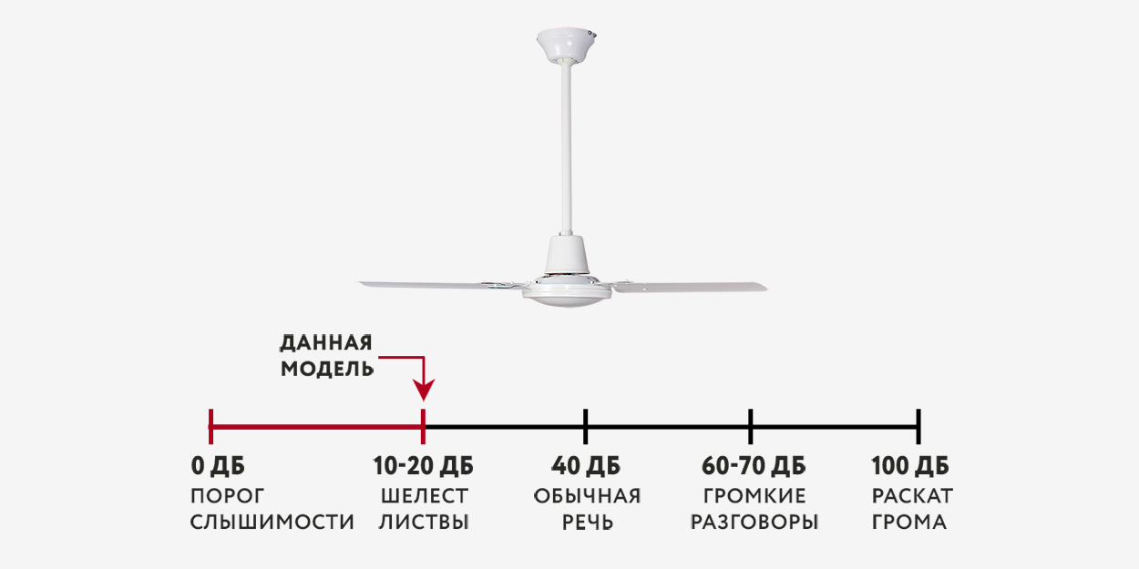 При работе вентилятора на максимальной скорости слышен исключительно тихий звук лопастей, рассекающих воздух. Звук работающего двигателя отсутствует.